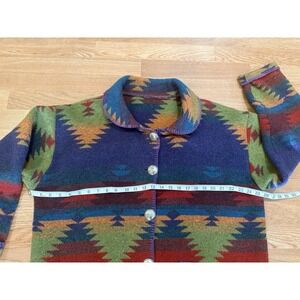 Vintage Rhonda Stark Size XL Wool Blend Southwestern Aztec Navajo Coat Jacket Colorful
