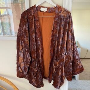 Anthropologie Esme Crushed Velvet Floral Kimono Cardigan Jacket