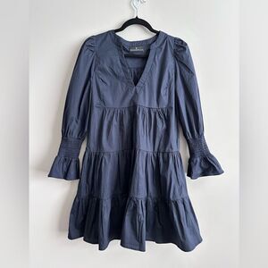 Pomander Place Navy Cotton Poplin Kenzo Dress M Cropped Sleeves