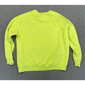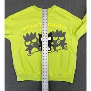 This bright lime green Badtz-Maru sweatshirt by Sanrio features a bold front graphic of the mischievous penguin and retro-style lettering. Made from a cozy cotton-blend fleece (60% cotton, 40% polyester), this women’s XL crewneck is a playful standout piece with a nostalgic Y2K-meets-kawaii aesthetic. Perfect for anime fans, casual streetwear, or layering for cozy lounge days with a pop of character style.