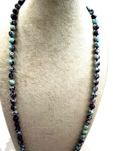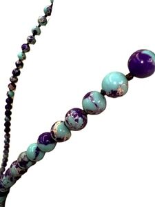 New Purple Teal Colored Stone & Glass Beaded Pendant Necklace
