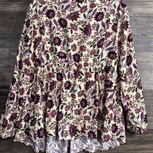 Torrid Cream and Purple Floral Blouse