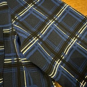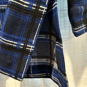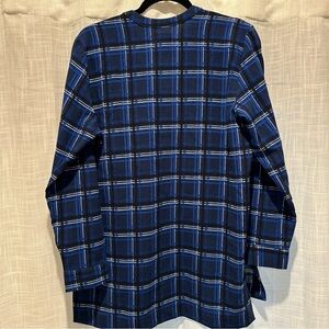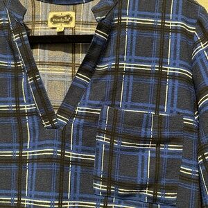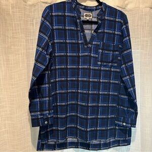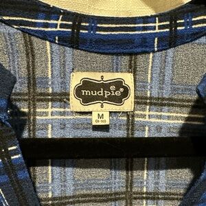 Mud Pie Women M Plaid Long Sleeve Tunic Top V Neck Blue Fall Winter Wear Causal