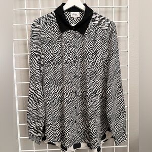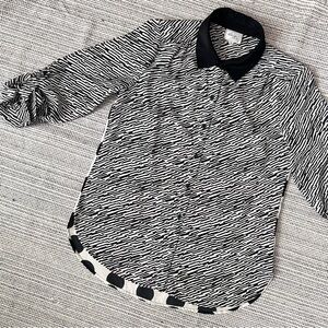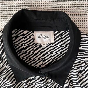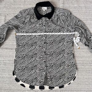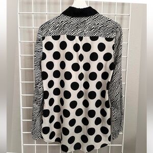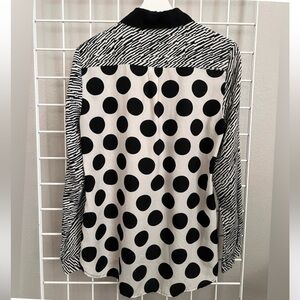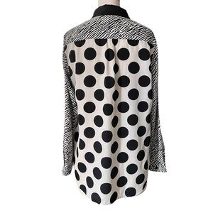 Black White Mixed Pattern Blouse Polka Dot Striped