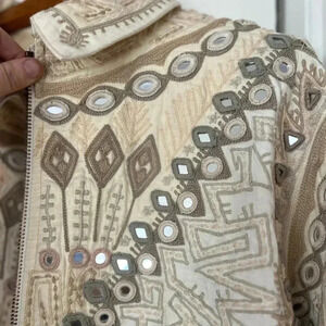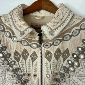 We The Free Embroidered Jacket - Boho Beaded Cotton Zip-Up - size Large
