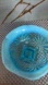Elegant blue glass bowl with intricate design. Perfect for home decor.