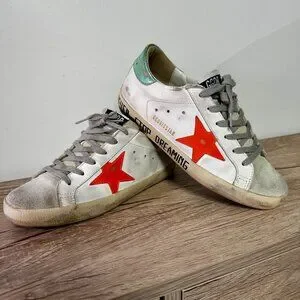Golden Goose Superstar “Never Stop Dreaming” Sneakers – White / Mint / Coral (Size 8)