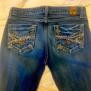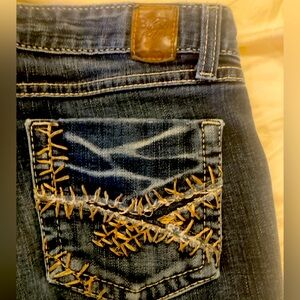 Chic dark blue jeans with a flare cut/bootcut. Perfect for a stylish look. Only reposhing because I do not care for the 19 inch leg openimg.