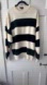 Boohooman crewneck off-white sweater with black stripes & intentional distressing. Boxy, oversized fit with cool street-wear vibes. In excellent pre-loved condition.