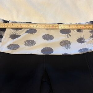 Sleek black capris. Perfect for active wear. Comfortable fit with a roll down waist feature. No flaws just has no size tag so see measurements.