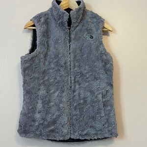 North Face Mossbud Swirl Insulated Reversible Faux Fur Vest Winter Gray Small