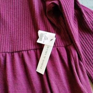 NWT Emma and Michelle Ribbed XL Burgundy Long Sleeve Babydoll Dress Minimalist