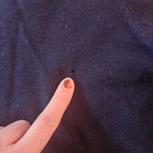 This sweater is perfect except for the small hole in the front of the sweater. This may be something that can be repaired, but I'm not sure. It is priced lower because of this flaw. NO LOWBALL OFFERS WILL BE CONSIDERED.