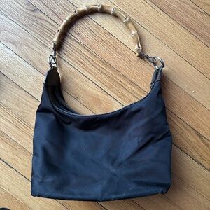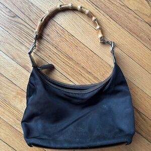 Stylish Gucci shoulder bag with bamboo handle. Perfect for daily use. Some discoloration inside.