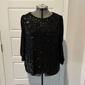 Dazzle in this elegant black sequin blouse, perfect for adding a touch of glamour to your outfit. Ideal for any special occasion. From smoke free home.