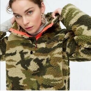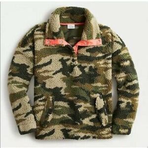 Jcrew Vintage Camo Sherpa Snap Pullover Button Fleece Jacket xs