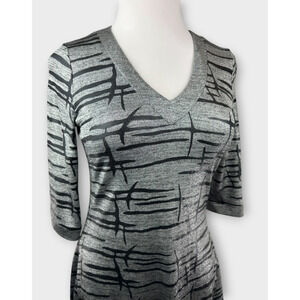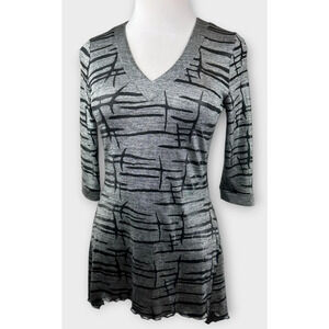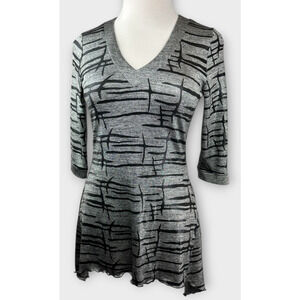 Joseph Ribkoff Silver Metallic Black Abstract Art Tunic Top Women's Size 10