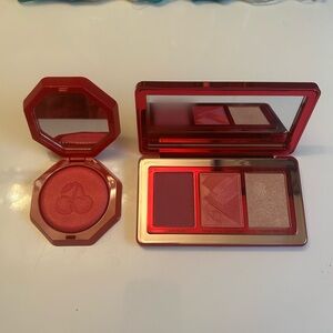 Fenty Beauty compact with cherry design. Natasha Denona Berry Pop Cheek Trio in red case.