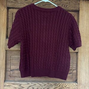 NWT short sleeve knit cardigan purchased from H&M last year. Nice burgundy /wine / maroon color with gold crested buttons. . Not for me and I missed the return window. Tagged size L. Color is best reflected in the flat lay photo. Thanks for looking, cheers.