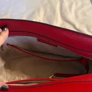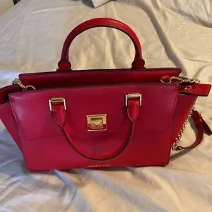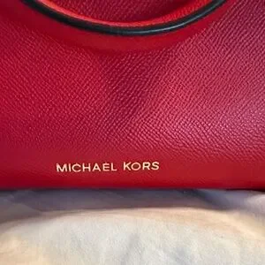 Chic and vibrant satchel by Michael Kors. Features rich red leather and gold-tone accents. Ideal for stylish outings. Used once. Just like brand new.