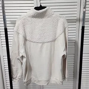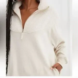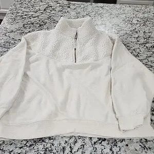 Aerie Cozy Hometown Holiday Sherpa 1/4 Zip Pullover Sweatshirt. Cream. Stand up collar and long sleeves. Excellent condition. Very oversized fit.