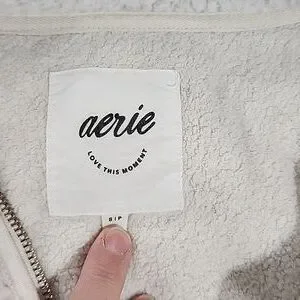 Aerie Cozy Hometown Holiday Sherpa 1/4 Zip Pullover Sweatshirt. Cream. Small.