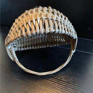 Add a touch of rustic charm to your home with this beautifully woven basket. Its natural brown color complements any decor, making it perfect for storage or as a decorative piece. 7”x6”x3” marked with KW 87 on the bottom.