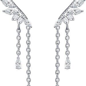 Angel's Wings Cubic Zirconia Ear Climber Dangle Earrings — Fancy and feminine sparkle for any occasion.