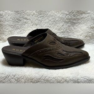 ROPER Beth Mule Slide Cowgirl Shoes US Womens Sz 8.5 Brown Detailed Faux Leather, EXCELLENT PREOWNED CONDITION! All reasonable offers considered [cross-posted] Be sure to check out my other items while you’re here.