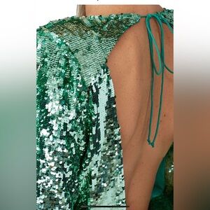 Dazzling green sequins radiate glamour on this figure-flattering mini dress from For Love & Lemons. Perfect for parties, holidays, or special nights out, this standout style features: