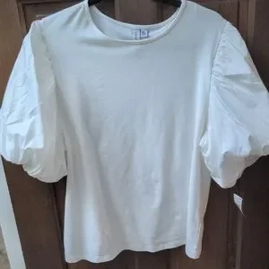 Elevate your style with this chic white blouse featuring elegant puff sleeves. Perfect for any occasion. NWT
