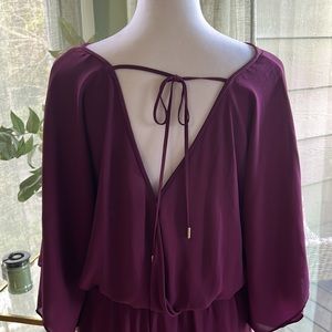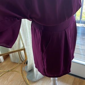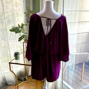 Elegant purple romper with a relaxed fit. Features a round neckline and long sleeves. Perfect for casual outings.