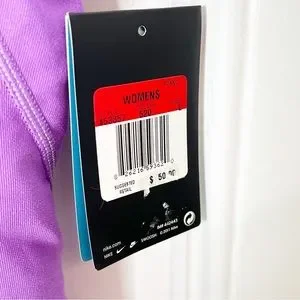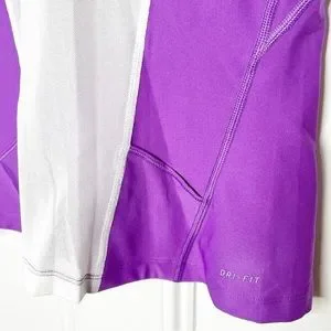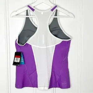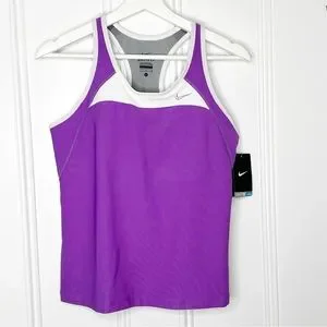 New, never worn with tags! Nike Women’s dry fit racerback purple and white tank top with built in shelf bra. Lightweight, breathable, quick dry performance fabric.