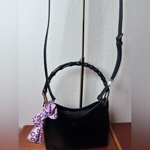 GUCCI Vintage Hand Bag 2 way Bamboo Black Leather Authentic