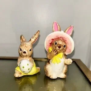 Pair of Vintage Lefton Ceramic Bunny Rabbit Figurines