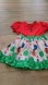 Features bright red puff sleeves, sweet blue button accents, and a twirl-worthy skirt with a vintage ornament print — perfect for the holidays!