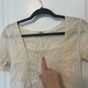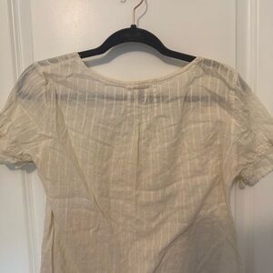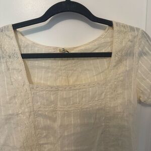 Chic cream blouse with delicate texture. Short sleeves and square neckline. Ideal for casual elegance.