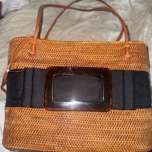Bosom bag Elegant Tan and Black Woven Tote Bag