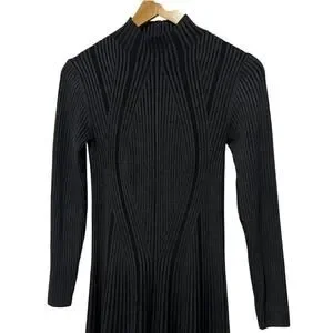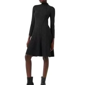 FRENCH CONNECTION WOMENS MEDIUM RIBBED KNIT LONG-SLEEVE DRESS CHARCOAL BLACK NEW