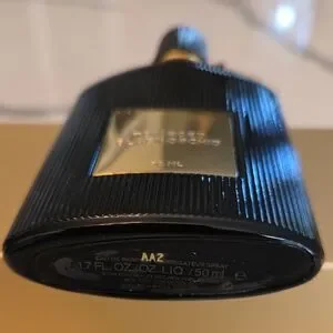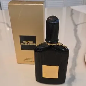 Sophisticated fragrance in a stylish black bottle with gold details. Perfect for elegance.