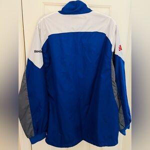 Official NFL NY Giants windbreaker in blue and white. Features iconic logo. Ideal for fans.