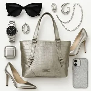 Nine West Pearl Silver Crocodile Print Shoulder Bag