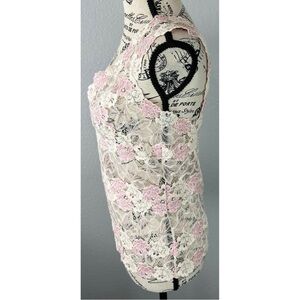 Josie Natori Y2K Pink/White Boho Floral Lace V-Neck Blouse Whimsy Fairy Large