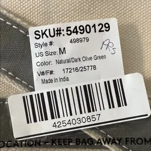 New lands end Canvas Tote Bag with green and Cream Design