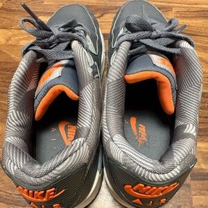 Elevate your look with Nike Air Max sneakers. Stylish black and gray design. Perfect for comfort and fashion. Used, but barely! See pics for any condition. Great pick up!