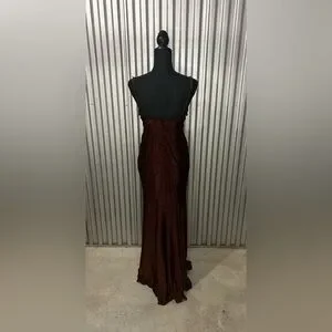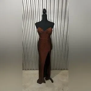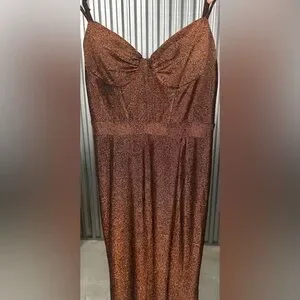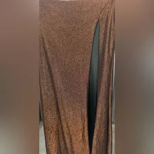 Women’s Jules & Cleo Design Nylon Metallic Spandex Orange Formal Maxi Slit Dress