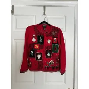 Vintage Knitted Ugly Christmas Holiday Sweater Button Up