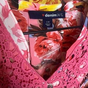 - ROAMAN'S Juliet Lace Bigshirt Long Shirt Blouse Multicolor Floral Print Pink 12W -