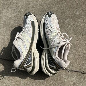 Step out in style with these sonic athletic chic cream and light blue/green sneakers. Perfect for everyday wear, these shoes offer both comfort and elegance.