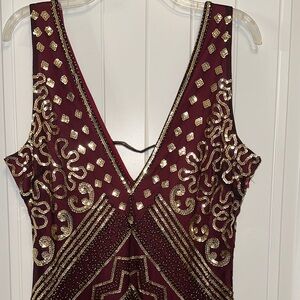 Burgundy and Gold Sequin Asymmetrical Flapper Dress
